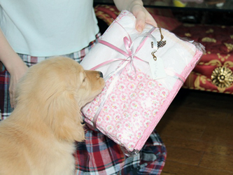 ゾーイちゃんが、お姉さまより手作りマットのプレゼントをいただきました。